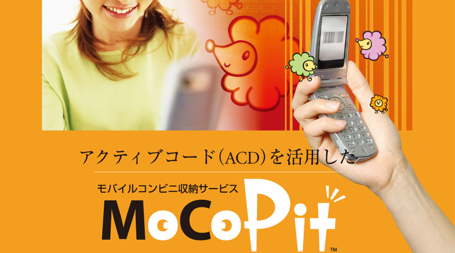 「MoCoPit」はコーデックスが開発したバーコード100枚分の情報を携帯電話端末に表示できる「アクティブコード」を利用したソリューションです。