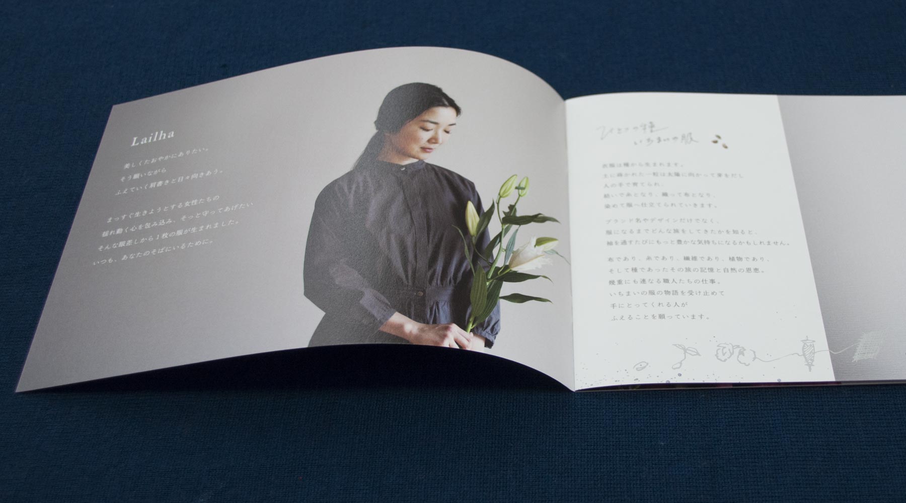 スリランカの工房から生まれる天然素材のお洋服「Lailha ( ライラ)」のブランドブックをデザインいたしました。
