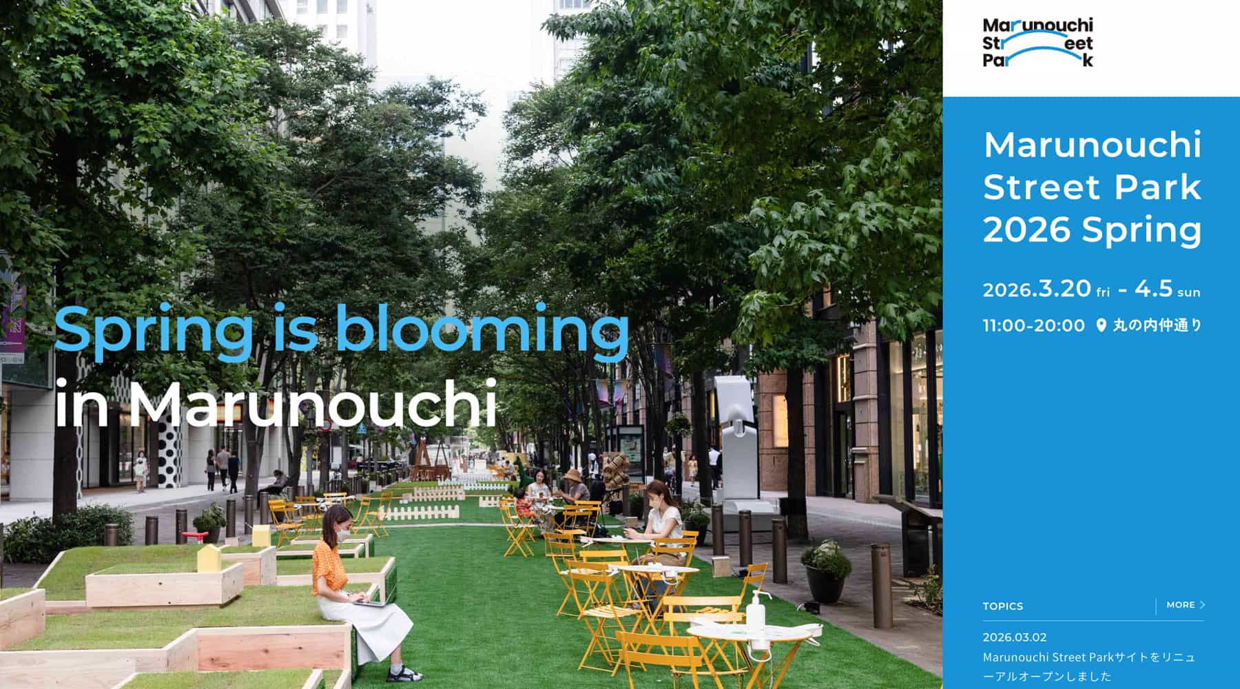 丸の内仲通りで開催されるMarunouchi Street Parkのサイトリニューアルを担当させていただきました。Marunouchi Street Parkは丸の内仲通りの今後のあり方や、活用方法を検証する社会実験として、春・夏・冬、季節に合わせたテーマに沿って期間限定で多様なイベントを開催されています。